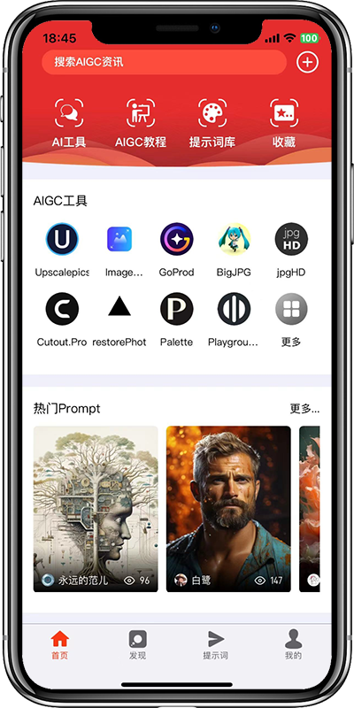 建功能,用户只需要根据需求选择相关参数即可自动构建Prompt;提供AIGC使用教程,用户可以在线查看各类AIGC工具的使用方式,